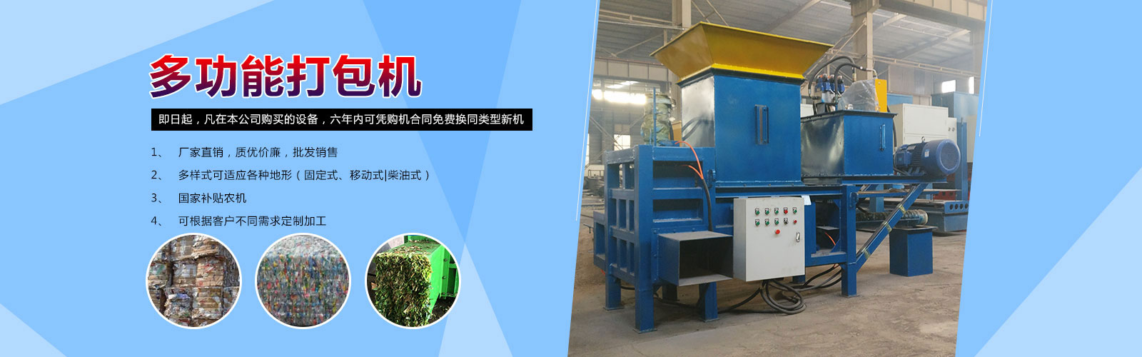 | 1、擁有50000平方米的倉儲中心和8000噸的現(xiàn)貨資源規(guī)格齊全 2、主營產(chǎn)品有農機設備,打包機,廢舊金屬處理設備,木材處理設備 ,先后出口到英國、俄羅斯、瑞典、馬來西亞、越南等30多個國家和地區(qū) |